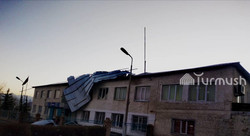 Фото - Балыкчыда катуу шамал мамлекеттик мекемелердин чатырын учуруп, шаарды жарыксыз калтырды