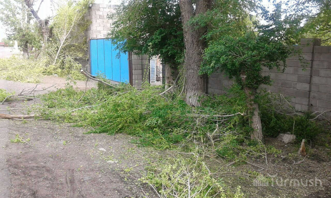 В городе Балыкчы проводят работы по обрезке веток деревьев, которые мешают электропроводам (фото)
