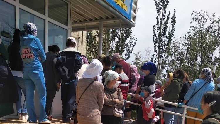 Фото – Очередь в поликлинику Балыкчы без соблюдения дистанции